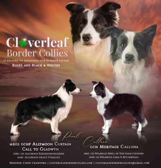 GCH Meritage Calluna x MBISS GCHP Allymoon Curtain Call to Gladwyn “Rival” welcomed a litter of pups this May. We are accepting reservations now.